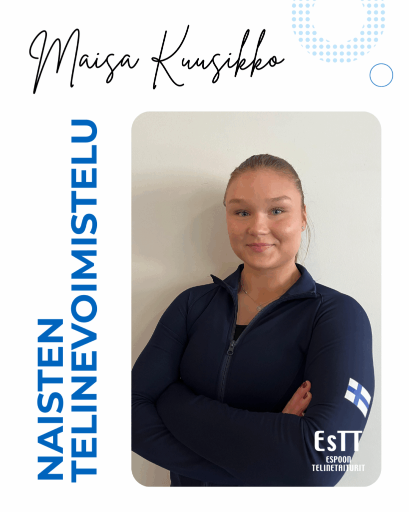 Maisasta lyhyesti: Maisa on syntynyt Tampereella vuonna 2005, ja aloittanut voimistelun 5-vuotiaana. Espoon Telinetaitureihin Maisa siirtyi kesällä 2025.